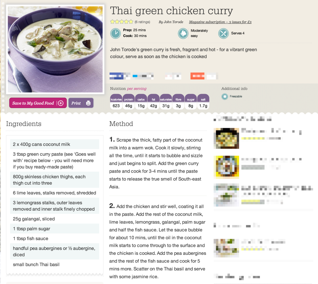 - Difficulty is listed as “moderately easy”. I don’t like this – it’s a bit vague. Easy compared to what? Chicken galantine or microwaving baked beans? Consider that Good Food is written by a bunch of different people and user submissions. Moderately easy for whom?