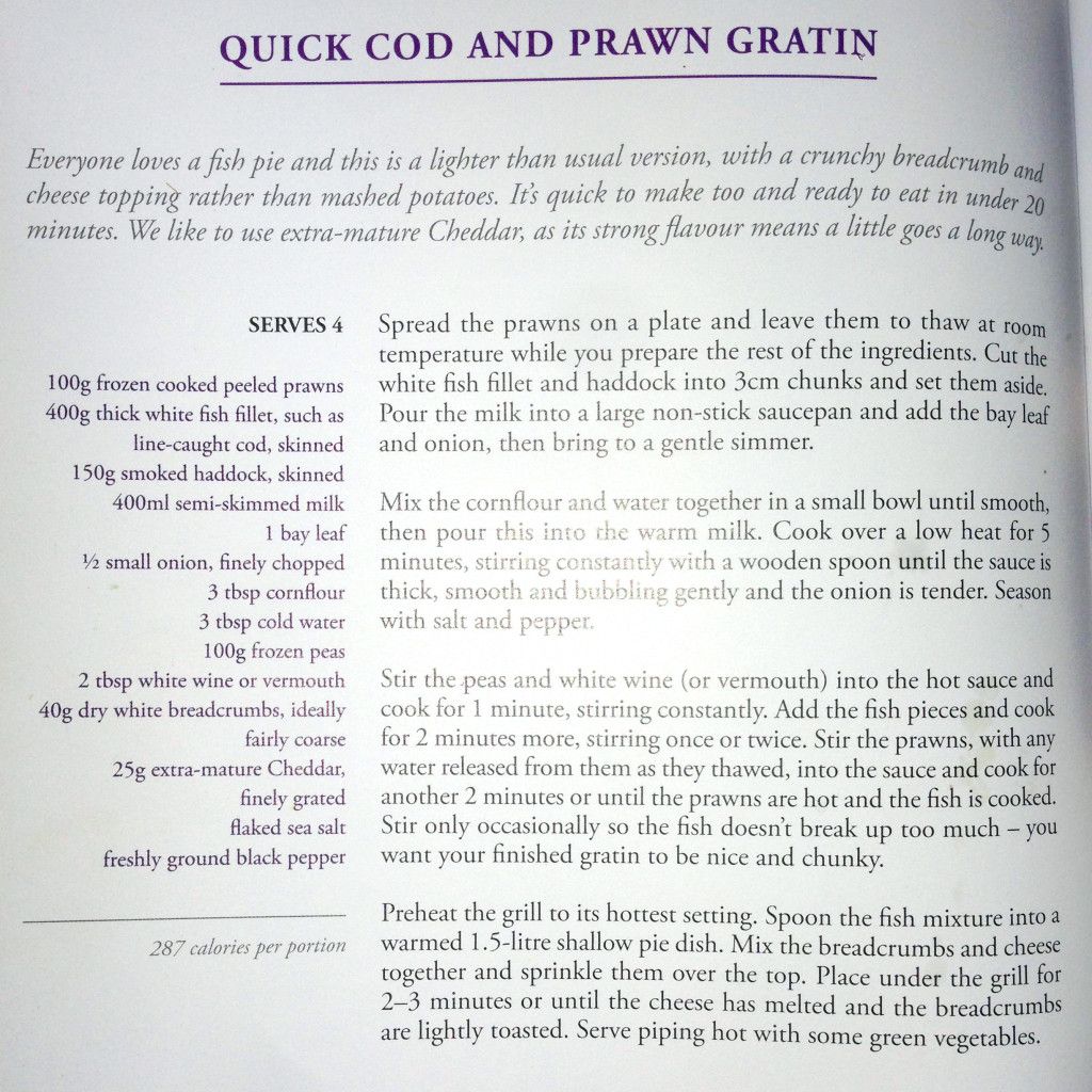 This is my favourite cook book. Everything in here is delicious and especially this recipe for cod & prawn gratin.