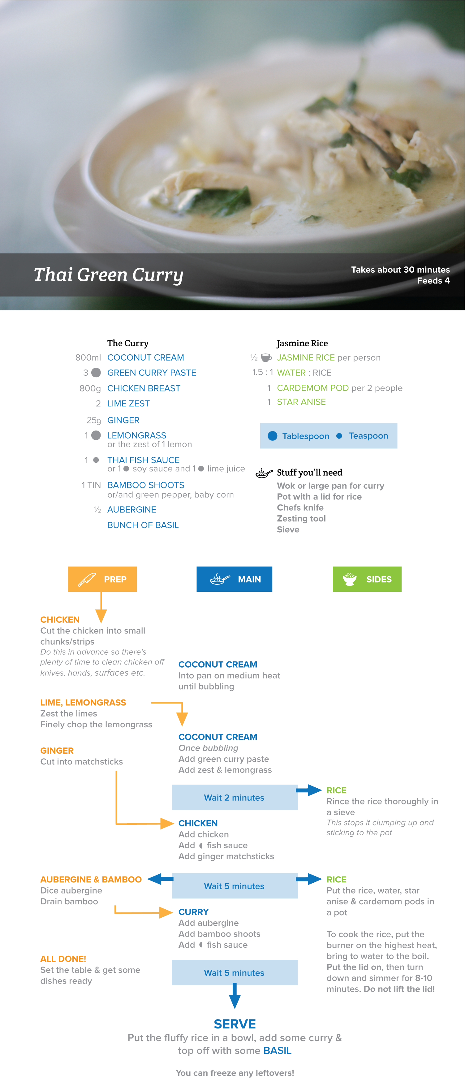 - I picked Thai Green Curry because it’s my favourite thing to cook. I make the paste from scratch, but I’ve not included that in this recipe because it basically amounts to “put all this stuff in a blender”.