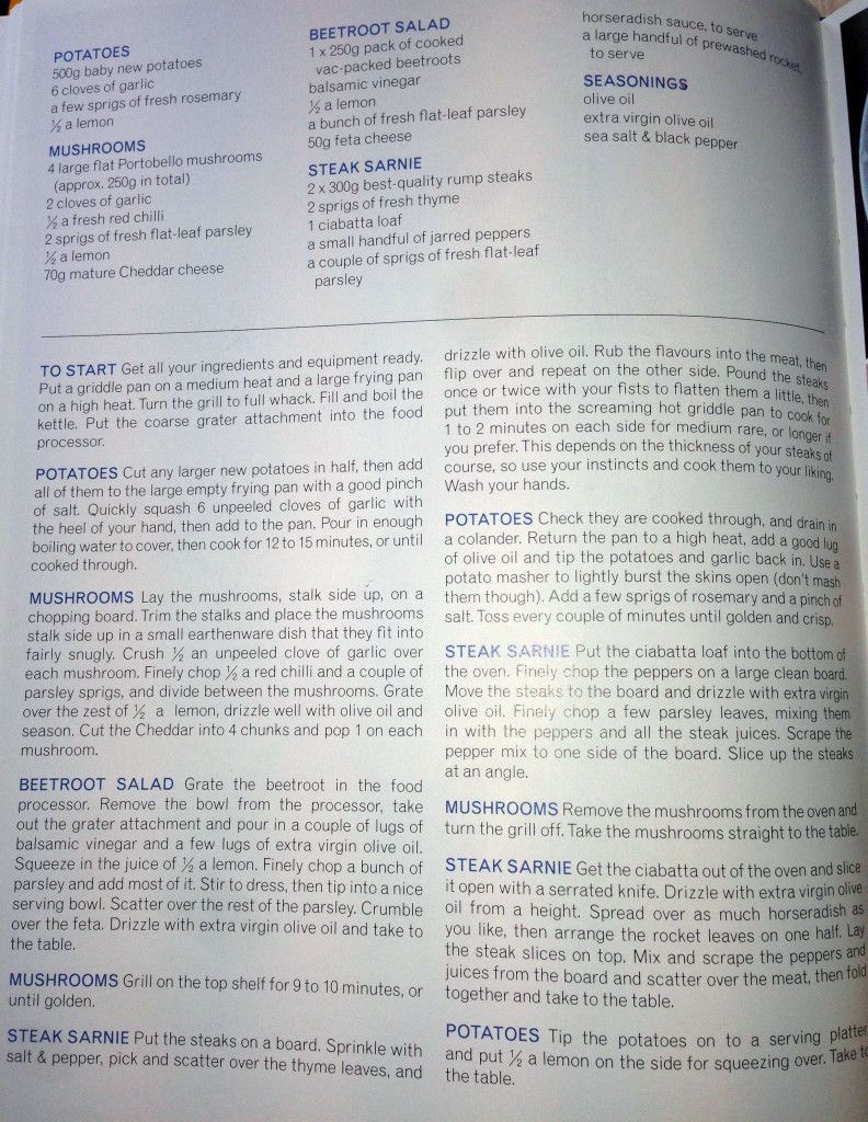 This is my favourite layout by far. Jamie makes it really easy to pick out what step you’re working on and allows you to break out a specific part from the overall recipe (say for example you just wanted to prepare the potatoes) with ease.